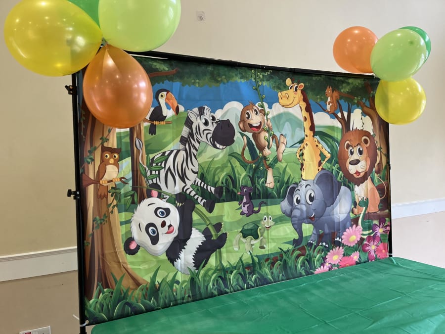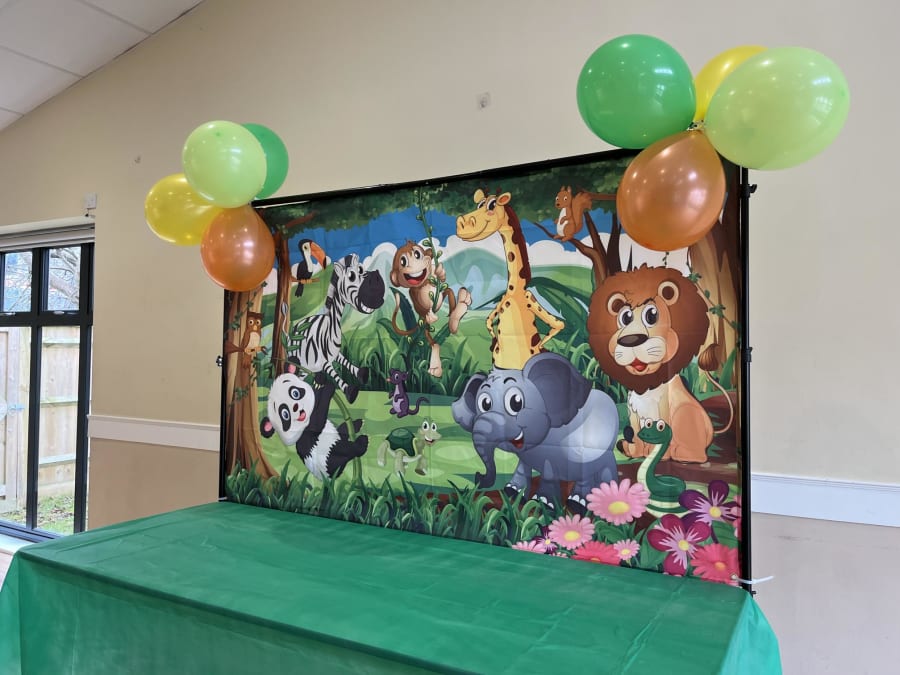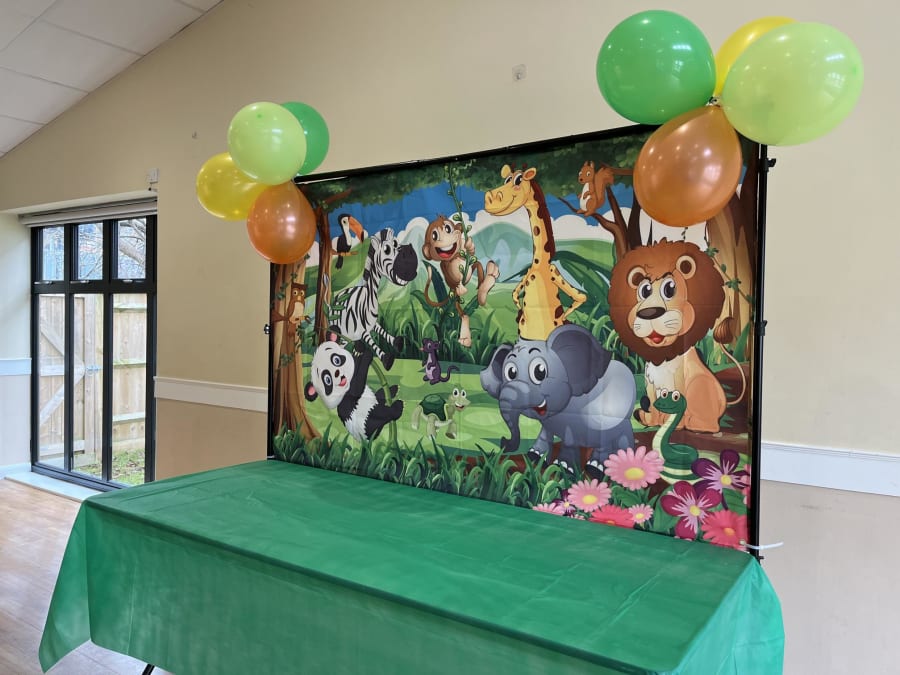 Jungle Backdrop on stand with table
