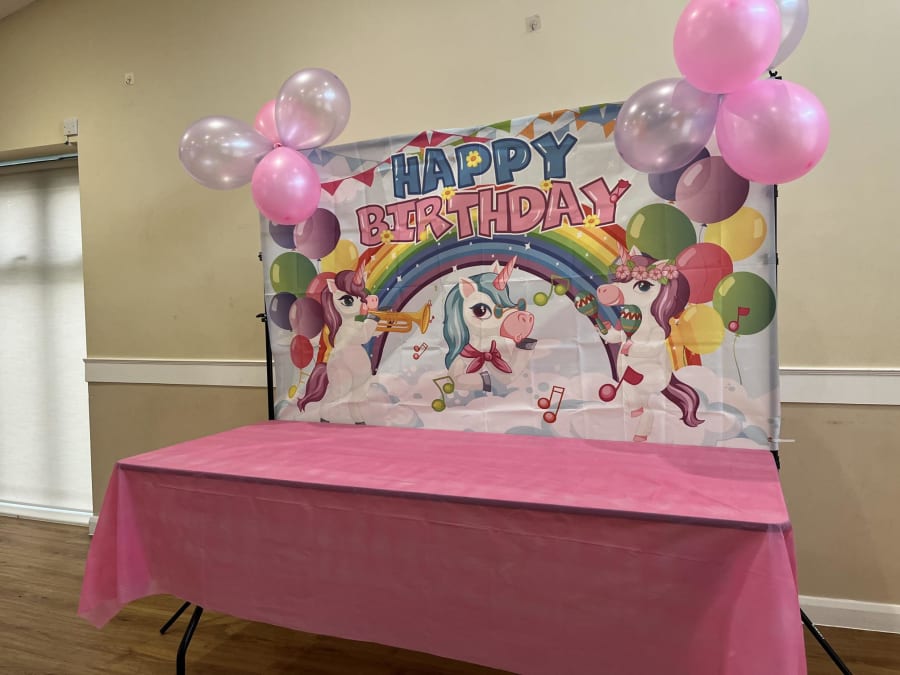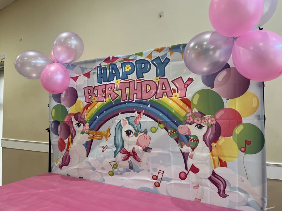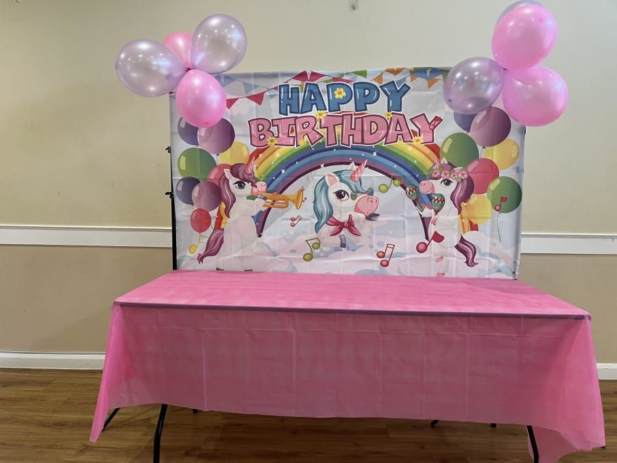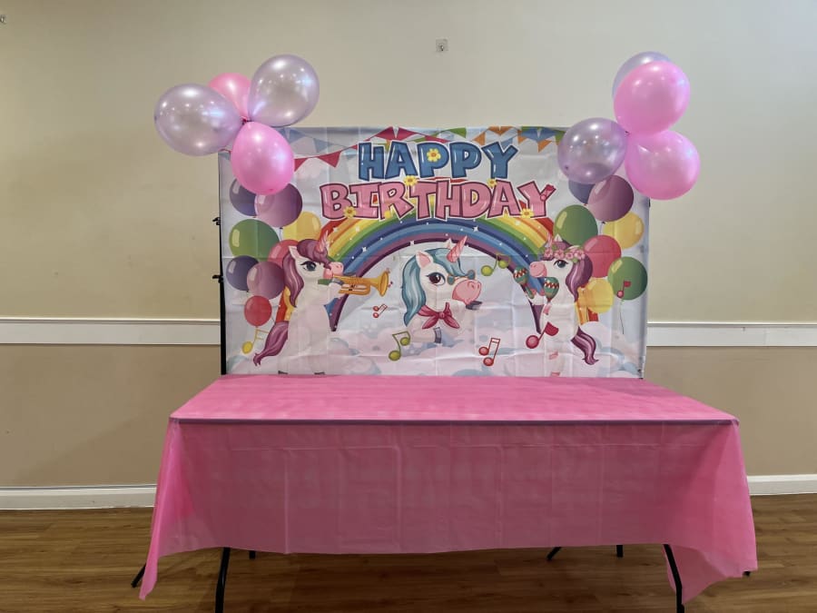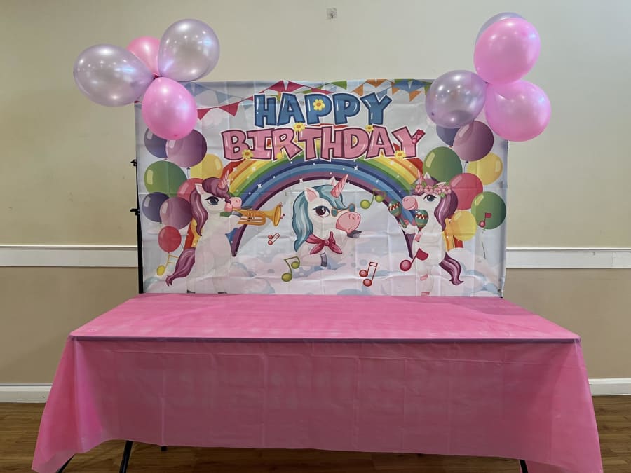 Unicorn Backdrop on stand with table