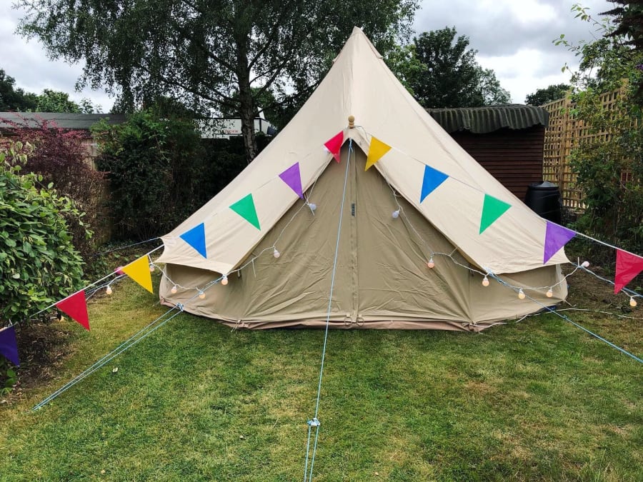Space required: 5M Bell Tent requires 7 square meters of grass to securely anchor guy ropes