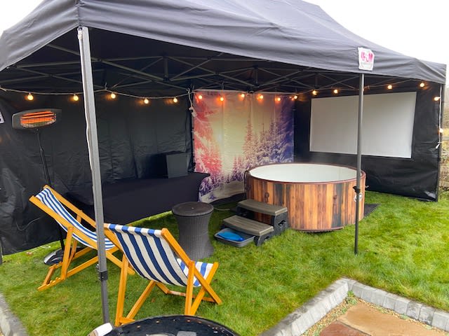 Hot Tub Cinema with 6M x 3M Gazebo (LARGE) for hire in Buckinghamshire, Berkshire, Middlesex, Oxfordshire.